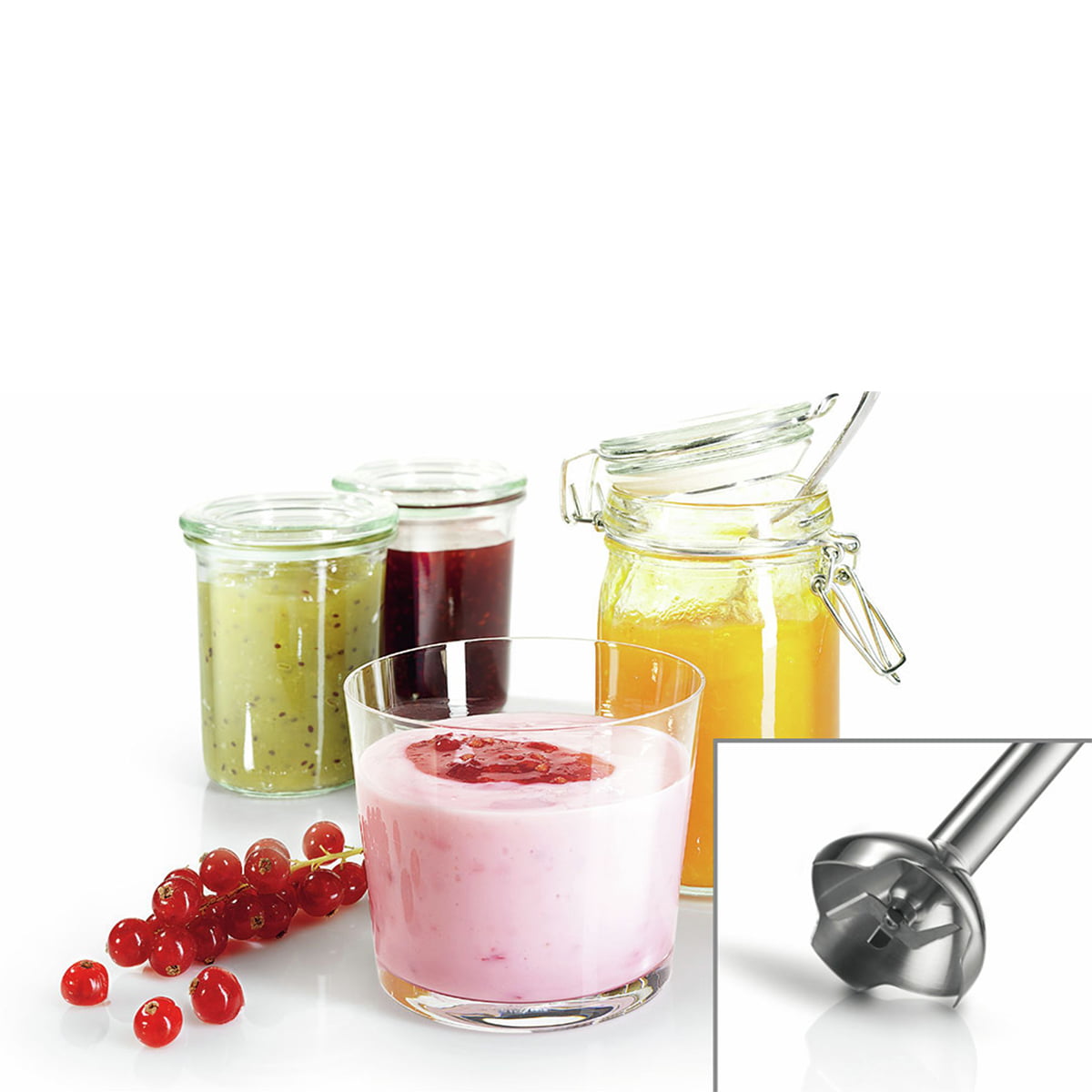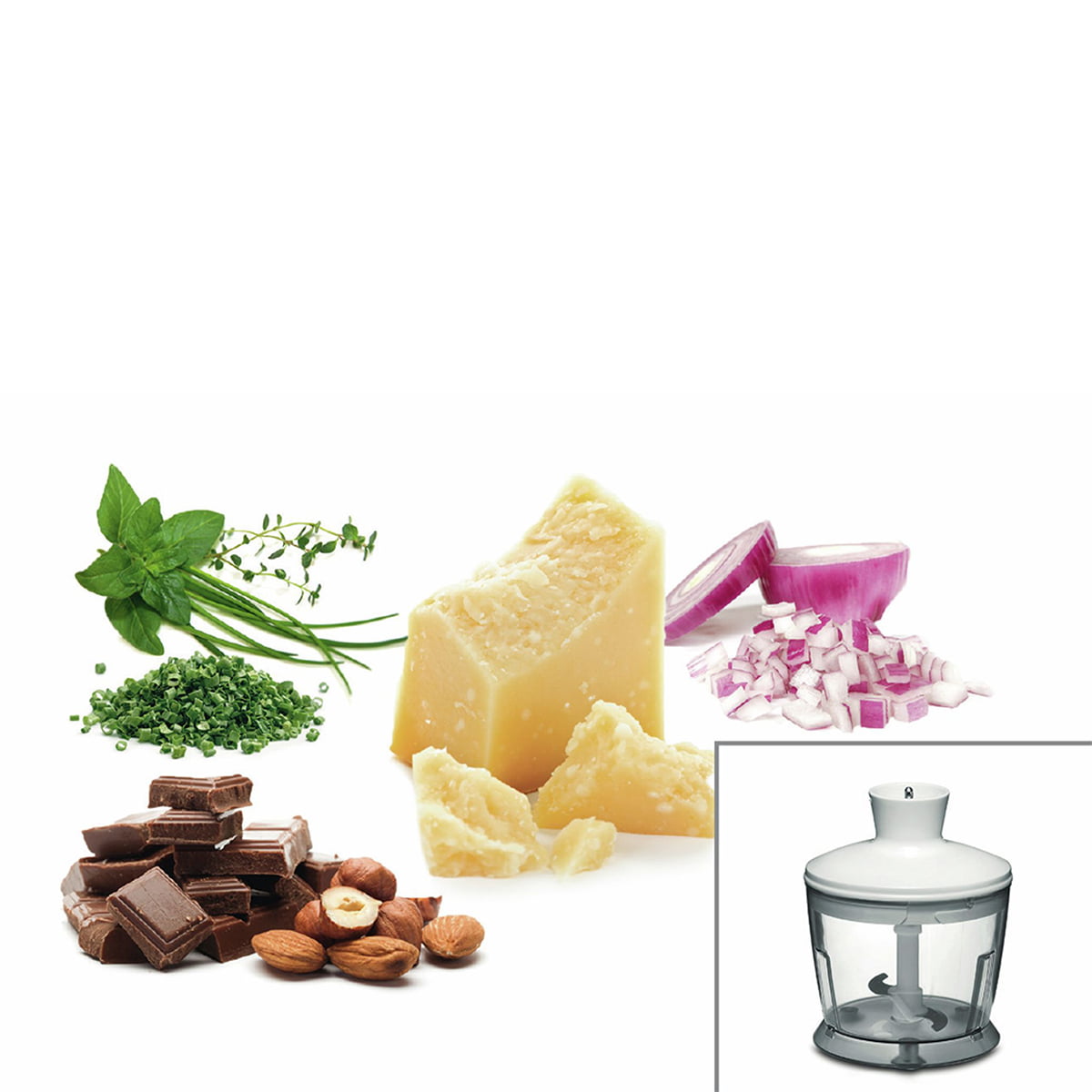 پیمانه شفاف درجه بندی شده برای مخلوط کردن به همراه درپوش – خردکن کوچک مناسب سبزیجات، آجیل، پیاز، گوشت، پنیر و … – همزن بالونی استیل ضد زنگ – تیغه بسیار تیز و نوآورانه با 4 لبه QuattroBlade – سهولت در جدا كردن پايه با استفاده از دكمه خروج – قابلیت شستشوی قطعات در ماشین ظرفشویی – عاری از BPA در بخش های پلاستیکی در تماس با مواد غذایی – سیستم قفل ایمنی – سیستم ضد چکه |