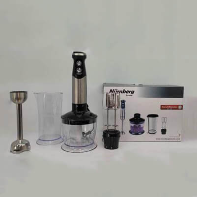 حجم ظرف خردکن: 0.5 لیتر – داراي قابلیت شستشوی لوازم جانبی در ماشین ظرفشویی – طول کابل برق 1.2 متر – پایه بسیار بلند و باریک – مناسب برای مواد داغ و سرد – دارای دکمه آزاد کننده و سهولت در سرهم بندی (مونتاژ) دستگاه – دستگیره باریک و مناسب برای جابجا نمودن دستگاه – LED با نور آبی- دارای کنترل کننده سرعت |