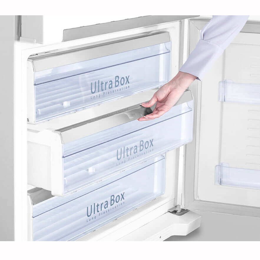 فریزر پایین – یخچال 331 لیتری – فریزر 119 لیتری – طراحی ارگونومیک – نوار درزگیر آنتی باکتریال با قابلیت تعویض – سامانه خودکار بسته شدن درب ها – قابلیت غیر فعال کردن یخساز – قابلیت اتصال به آب شهری – فناوری کاهش مصرف انرژی – سامانه گردش هوای سه بعدی – سنسور حرکتی هوشمند – سامانه مدیریت مصرف انرژی – سیستم کنترل هوشمند – قابلیت تبدیل فریزر به یخچال Extra Ref – طبقات شیشه ای بدون قاب – جا میوه ای دوقلو – روشنایی فریزر HANDLE LED – سامانه کنترل سرمایش الکترونیک Digital Cooling – نمایشگر با عملکرد لمسی – سامانه مدیریت مصرف هنگام سفر – سامانه سرمایش دوگانه – جهت باز شدن درب به سمت راست – دارای 3 طبقه، 2 کشو و 5 طبقه درب در یخچال – دارای 3 کشو و 2 پاکت درب در در فریزر