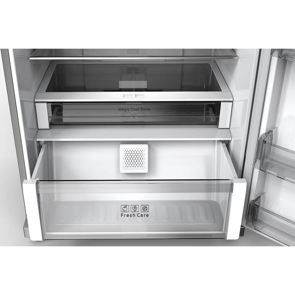 کد قدیم: 1027LW – یخچال 383 لیتری – فریزر 120 لیتری – نوار درزگیر آنتی باکتریال با قابلیت تعویض – سامانه خودکار بسته شدن درب ها – آبسردکن مخزنی – حالت ذخیره انرژی هوشمند (ECO) – فناوری کاهش مصرف انرژی – مجهز به فیلتر دو لایه نانو کربن – سامانه کنترل سرمایش الکترونیک Digital Cooling – سامانه سرمایش دوگانه – سامانه گردش هوای سه بعدی – سامانه مدیریت مصرف هنگام سفر – سیستم کنترل هوشمند – طبقات شیشه ای بدون قاب – محفظه میوه و سبزیجات – جهت باز شدن درب یخچال و فریزر به سمت راست – دارای 2 پاکت درب و 2 طبقه در فریزر – دارای 3 پاکت درب، 3 طبقه و 2 کشو در یخچال |