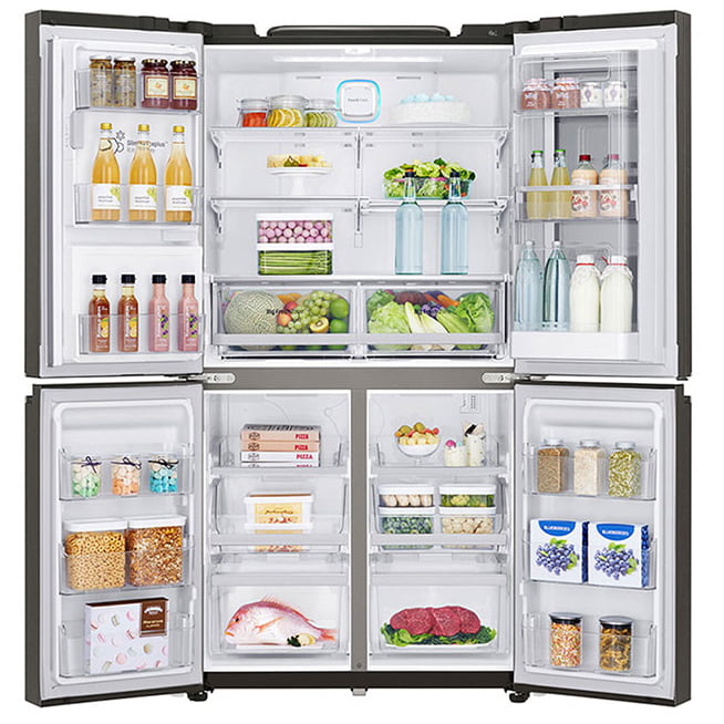 فناوری ™SmartThinQ – فیلتر بهداشتی +Hygiene Fresh – قابلیت مشاهده مواد غذایی درون یخچال فقط با ضربه زدن به پنل شیشه ای براق درب – تکنولوژی فیلتر هوا – دارای صفحه نمایش Instaview – سیستم جریان هوای چند گانه – کشوی نگهدارنده میوه و سبزیجات – یخ ساز باریک داخل درب |