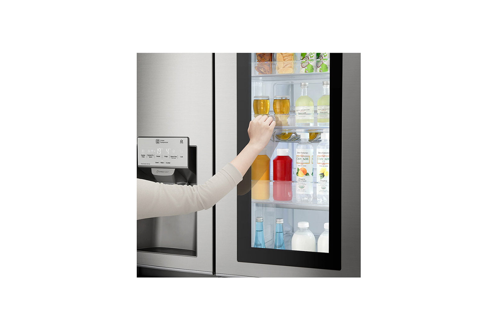 یخچال فریزر ساید بای ساید ال جی مدل SXI555NS دارای درب جدید ال جی InstaView Door-in-Door بوده که موجب دسترسی هر چه سریعتر به اقلام پرمصرف داخل یخچال شده و در نتیجه تازه ماندن مواد غذایی به مدت بیشتر، کاهش میزان مصرف انرژی و هدر رفت سرمای داخل یخچال را به دنبال دارد.