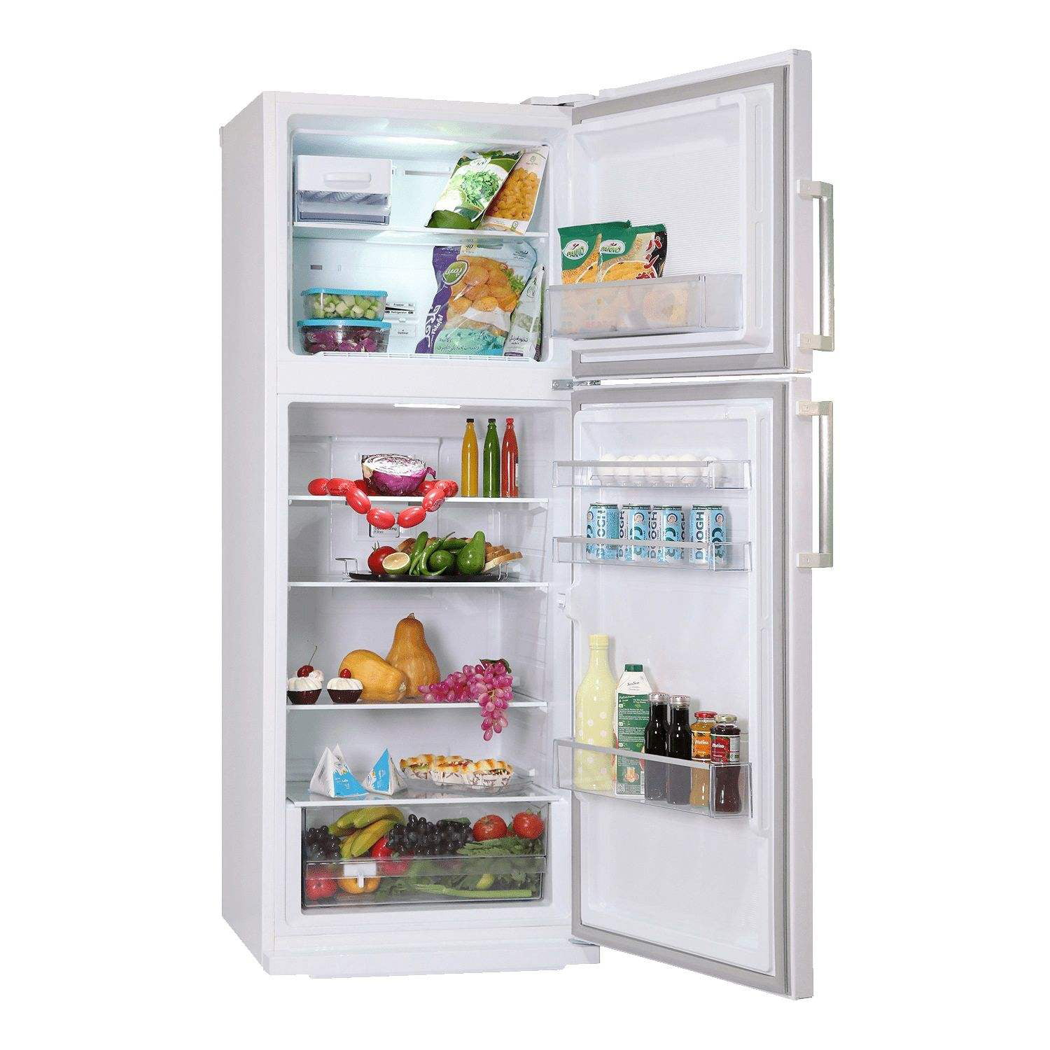 یخچال 255 لیتری – فریزر 80 لیتری – بدنه از جنس ورق فولادی – طبقات شيشه ای نشكن – جالبنياتی و جابطری – كشوی نگهداری ميوه و سبزيجات تازه – سيستم كنترل ديجيتال مجهز به نمايشگر تاچ پنل – سيستم گردش هوای اجباری – سيستم كاهش دهنده مصرف انرژی – پايه های قابل تنظيم چرخ دار – دارای 4 طبقه، 1 کشو و 3 طبقه درب در یخچال – دارای دو طبقه و یک طبقه درب در فریزر |