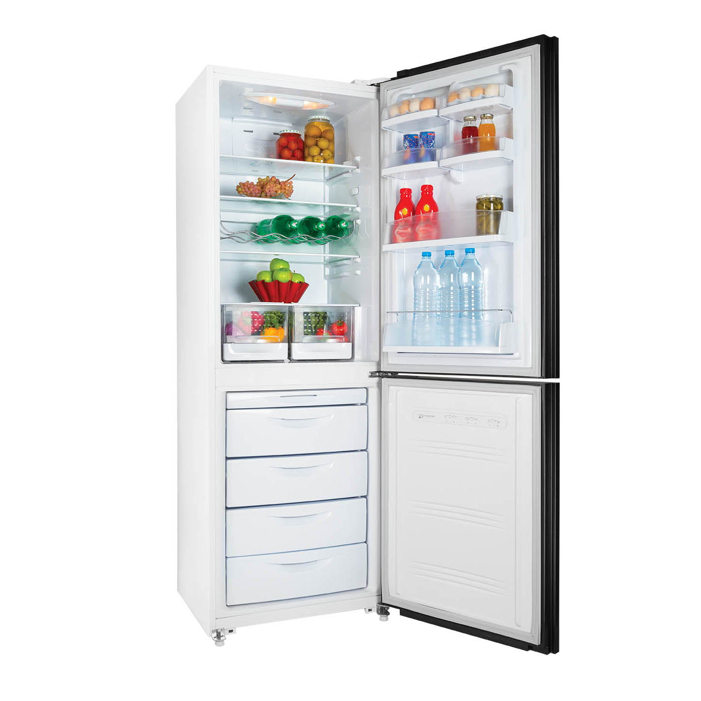 کنتلر دیجیتال مجهزبه نمایشگر تاچ پنل – سیستم سرمایش مجزای یخچال و فریزر – کشوی میوه و سبزیجات تازه – طبقات شیشه ای نشکن – جا لبنیاتی و بطری – فریزر 4 کشو – سبدهای بزرگ پلاستیکی فریزر – پایه های قابل تنظیم و جرخ دار سیستم گردش هوای چند قسمتی – سیستم کاهش دهنده مصرف انرژی – اخطار باز ماندن درب