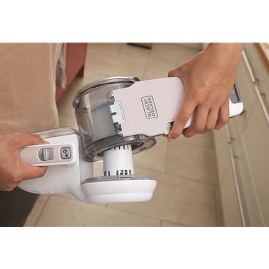 مخزن گرد و غبار جاروشارژی PV1820 بلک اند دکر به راحتی جدا شده و تخلیه آن بدون تماس مستقیم با آلودگی انجام می گیرد که از نظر بهداشتی یک امتیاز مهم به شمار می رود.