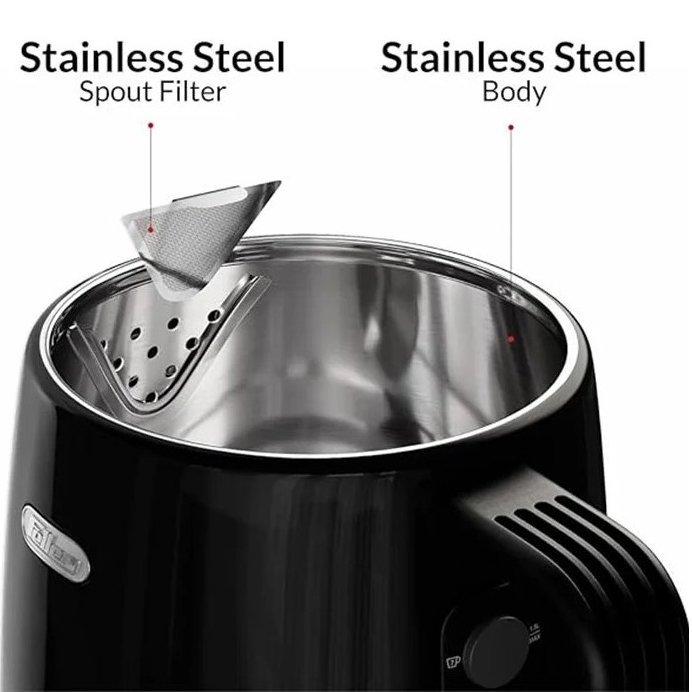 کتری چای ساز 2200 وات فلر مدل TS290 با ظرفیت 1.7 لیتر و از جنس استیل ضد زنگ ساخته شده که هم مقاومت بالایی دارد و هم در برابر رسوب و تغییر طعم آب بسیار پایدار است. کف داخلی استیل ضد زنگ و المنت حرارتی مخفی طول عمر دستگاه را افزایش داده و تمیزکاری آن را راحت تر می کند. قوری نیز از جنس پیرکس مقاوم و با ظرفیت 1.1 لیتر طراحی شده تا بتوانید به وضوح میزان دم کشیدن چای را مشاهده کنید.
